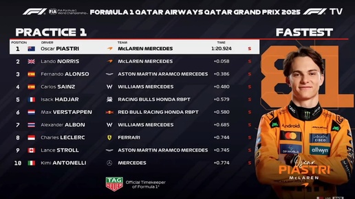 F1 2025 R23 Qatar - Practice 1 (ГП Катара - практика 1)