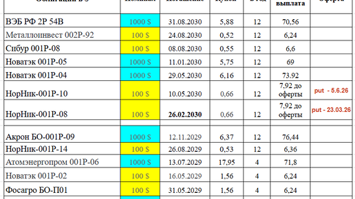 Сводная таблица по выпускам облигаций в $