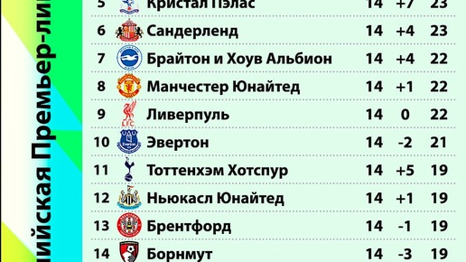Турнирная таблица АПЛ после 14-го тура! @football_epl_stars