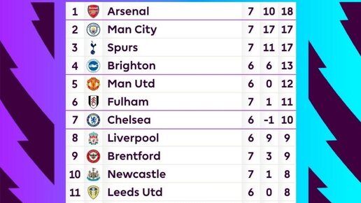 Итак, недавно миновал 8 тур Английской Премьер лиги(АПЛ). Для начала хотелось бы сказать о 5 лучших, которую замыкает Манчестер Юнайтед с 12 очками, а лидирующая позиция за чемпионство пока принадлежит Арсеналу( 18 очков). Стоит подметить, что некоторые матчи не проходили в связи с гибелью Елизаветы 2 и были перенесены на неопределенный срок, так что нам остается только ждать...