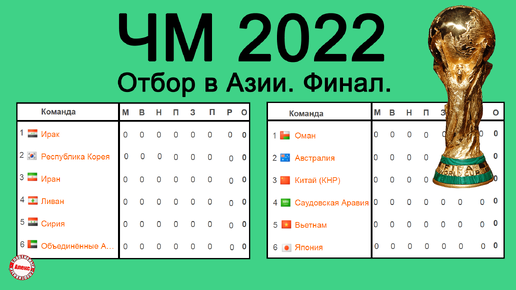 ЧМ 2022. Азия. 3 раунд. 1 тур. Результаты. Расписание. Таблицы.