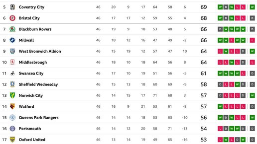 Итоговая таблица регулярного сезона Чемпионшипа 2024/25 📊