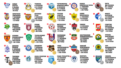 Турнирная таблица за всю историю Первого дивизиона + ФНЛ. Кто суммарно набрал больше всего очков?