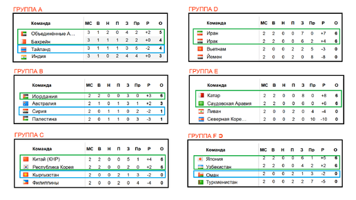 Кубок Азии по футболу. Кто выходит в 1/8 после 1-го тура? Таблица. Результаты. Расписание.