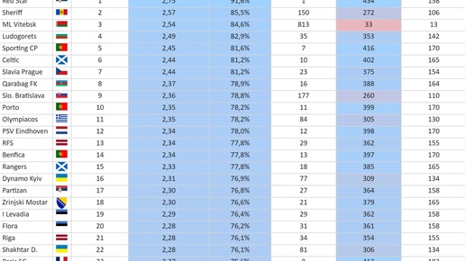 Изучаем результаты 930 клубов в 46 европейских лигах в 2020-2025 годах. Лучшие клубы по очкам за игру в топ-5 лигах Лучшие клубы Европы по очкам за игру Сводные таблицы топ-5 лиг за 2020-2025 годы Английская...