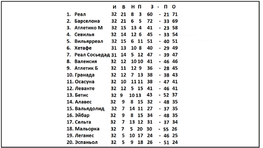Чемпионат Испании по футболу. Ла Лига. 32 тур. Результаты, таблица и расписание.