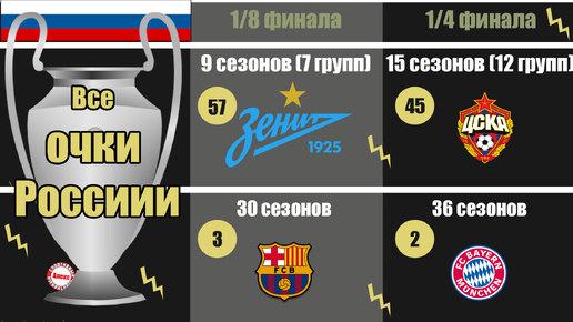 Как выглядит полная таблица Лиги Чемпионов для России. Сколько очков набрали ЦСКА, Локомотив… ?