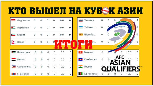 Кто сыграет на Кубке Азии по футболу? Итоги отбора. Таблицы. Индия едет!