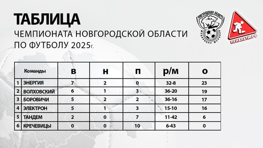 ⚽️📊🏆 турнирная таблица чемпионата Новгородской области по футболу среди мужских команд 11 × 11 на состояние 📆 11 сентября 2025 года