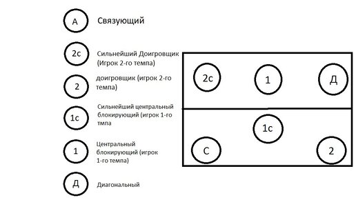 Если мы говорим о традиционном волейболе, наиболее популярная и эффективная тактика выглядит примерно так: ●     Два доигровщика. Они обеспечивают прием и защиту. Участвуют также в нападении из 4, 2 и 6 зоны и в блоке, когда находятся на передней линии. ●     Пасующий. Он отвечает за раздачу мячей нападающим, обычно никогда не участвует на приеме. Участвует на блоке, когда находится на передней линии. ●     Два центральных. Их приоритет — это блок. Также участвуют в нападении из 3 зоны. После подачи, на задней линии, обычно меняются с либеро...