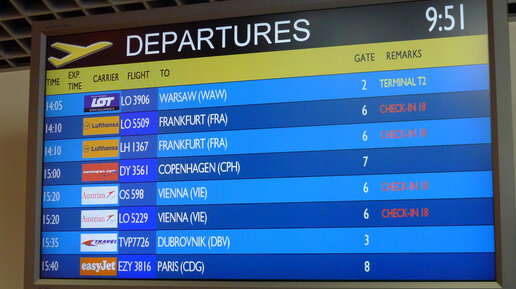Онлайн-табло в аэропорту — это большая электронная доска, на которой перечислены все ближайшие вылетающие и прилетающие рейсы, т.е это важный источник информации о рейсе. Найти онлайн-табло в аэропорту просто, оно всегда на виду. Как правило, его видно при входе. Все надписи на табло бывают обычно на местном языке и на интернациональном английском. На самом деле в аэропорту два онлайн-табло: табло прилета — Arrivals, вылета — Departures. Важно не перепутать! Табло вылета Departures Табло вылета...