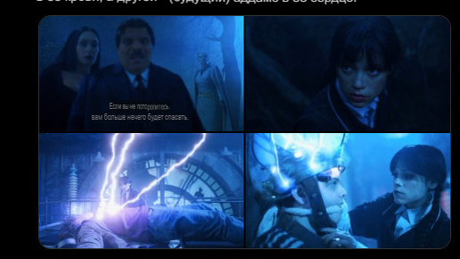 На самом деле я уже видела эту теорию раньше и полностью с ней согласена, потому что почему бы еще надгробие было разрезано пополам? Как будто у них не было причин не раскрывать, кто из Аддамсов потенциально может умереть. Ну, разве что шокирующий эффект... но, как будто смерть любого члена семейки Аддамс была бы шокирующим эффектом. Поэтому то, что они скрыли имя, было странным. Если только... Это действительно имя Тайлера, и они пытаются сохранить в полной тайне, что он — будущий муж Уэнсдей и...