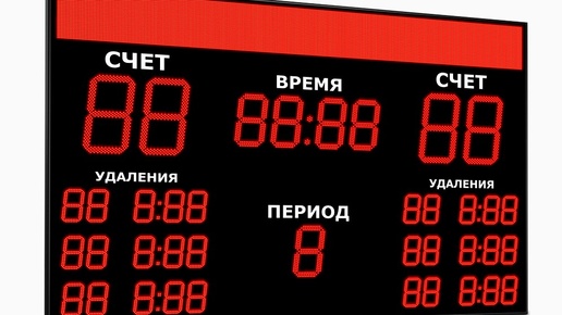 Табло для хоккея Спортивные табло «Импульс» для хоккея с шайбой или на траве устанавливаются на закрытых ледовых аренах, открытых площадках и стадионах и имеют надежную влагозащиту корпуса, световых индикаторов и управляющей электроники. Отображаемые данные. Кроме стандартного набора спортивных параметров (игровое время, период, счет, названия команд), хоккейные табло также показывают данные об удалениях: номер игрока и штрафное время его удаления с площадки (таймер обратного отсчета)...