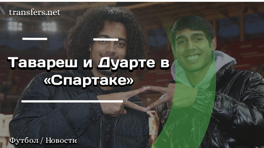 На данный момент команда проходит второй зимний сбор в ОАЭ. Футбольный клуб «Спартак» (Москва), официально представил двоих новичков команды. Соответствующую информацию сообщила пресс-служба столичной команды. 21-летний фланговый защитник сборной Португалии U21 Томаш Тавареш перебрался из «Бенфики». С «красно-белыми» заключён контракт до лета 2026 года, также в соглашении прописан пункт о возможном продлении ещё на год. Трансферная стоимость € 3 млн (без учёта зарплаты игрока). Особенностью является...