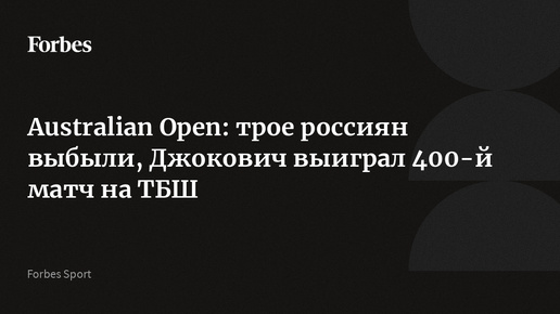 Australian Open: трое россиян выбыли, Джокович выиграл 400-й матч на ТБШ
