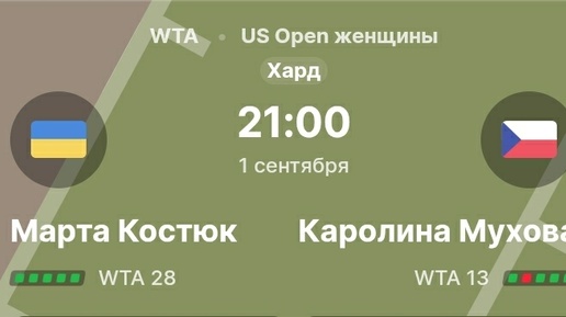 Прогнозы теннис ATP за 01.09.25. Костюк - Мухова, Александрова - Швентек и др.