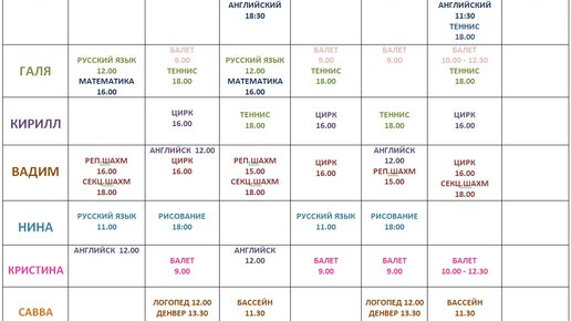 Как я составляю расписание доп.занятий для семи из девяти детей.