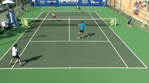 Инновация с «Челленджеров». На прошлой неделе на «Челленджере» на Тенерифе, кажется, придумали новую тактику для парного тенниса. Полуфинал, в котором Маттео Гиганте и Франческо Пассаро обыграли Марко Бартолотти и Серхио Мартоса-Горнеса завершился вот такой подачей. Гиганте на матчболе (на «Челленджерах» при счете 40:40 в паре играется решающее очко) попал вторым мячом в ногу Мартосу-Горнесу, и это принесло очко его команде – потому что правила запрещают принимающему (или кому-либо из принимающей пары) касаться мяча, пока он не ударится об корт...