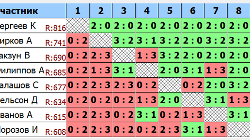 Всем привет! новый для нас формат турниров - ТРИ Лиги по 8 игроков, без отборочного тура такие результаты I Лига II, III ЛИГИ трансляция столы 6-5-4 https://vk.com/video-33206688_456240917 Чирков - Морозов https://dzen.ru/video/watch/68244ef4e95726713791ea19 Сергеев - Иванов https://dzen.ru/video/watch/6824501b3018820c880f4585 Чирков - Нельсон https://dzen.ru/video/watch/6824506d5a881453f08d8726 Иванов - Морозов https://dzen.ru/video/watch/68245137439e726fd4aa8b42 Чирков - Филиппов https://dzen...