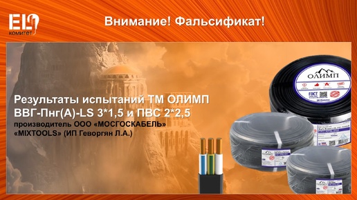 EL-Комитетом НОПСМ получены результаты испытаний образцов кабельной продукции ВВГ-Пнг(А)-LS 3*1,5 и ПВС 2*2,5 ТМ ОЛИМП (производитель ООО «МОСГОСКАБЕЛЬ», ИНН 5032338338), закупленных в магазине «MIXTOOLS» (ИП Геворгян Л.А.) в г. Москве осенью этого года. Согласно протоколам испытаний, выданным испытательным центром ООО «НПЦ РОСТ», в обоих образцах выявлены отклонения от требований качества и безопасности ГОСТ: ❌ ВВГ-Пнг(А)-LS 3*1,5 – не соответствует ГОСТ 31996-2012 по параметру «толщина изоляции...