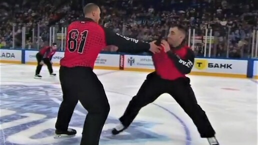 Арбитры Торнике Кучава и Александр Сысуев устроили шуточную драку во время Матча звёзд Континентальной хоккейной лиги (КХЛ). Эпизод произошёл в конце первого периода матча между дивизионами Чернышёва и Харламова. Судьи сбросили шлемы и устроили драку. Кучаве удалось свалить Сысуева на лёд, в результате чего у того пошла кровь из носа. Матч звёзд КХЛ проходит 8 и 9 февраля в Новосибирске. Дивизион Чернышёва одержал победу над дивизионом Харламова со счётом 10:6 и сыграет в финале с командой дивизиона Боброва, которая победила дивизион Тарасова — 9:6...
