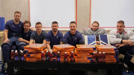 Перед выездом команды в Москву хоккеистов «Торпедо» навестил наш партнер — Додо Пицца, чтобы заранее поздравить ребят с предстоящим Днем