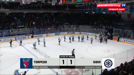 После первого периода матча КХЛ "Торпедо" - "Сибирь" счет равный