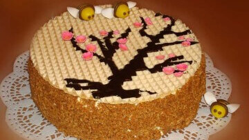 Оформление торта с вафельной картинкой