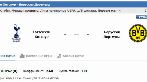 Тоттенхэм : Боруссия Д - прогноз на матч 13 февраля