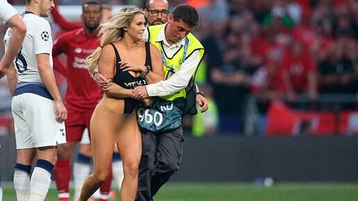 Полуголая фанатка выбежала на поле во время финала Лиги чемпионов