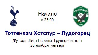 Прогноз на матч Тоттенхэм Лудогорец с коэффициентом 3.05 от Филиппа Кудрявцева
