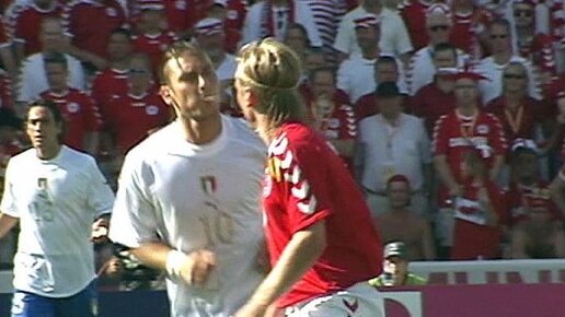Сборная Италии ехала на Евро-2004 одним из фаворитов, но не сумела преодолеть даже групповой этап. Уже после первого матча она лишилась лидера команды Франческо Тотти - трехматчевая дисквалификация с формулировкой "неспортивное поведение"...