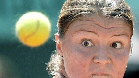 Забавные фотографии теннисистов. Специально или случайно у фотографов получаются великолепные снимки во время проведения теннисных матчей. К вашему вниманию небольшая подборка фотографий с забавными моментами с теннисных игр. 1. Направлять мяч можно и не ракеткой...