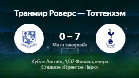 «Футбольный матч с хоккейным счетом»: Транмир Роверс — Тоттенхэм 0:7