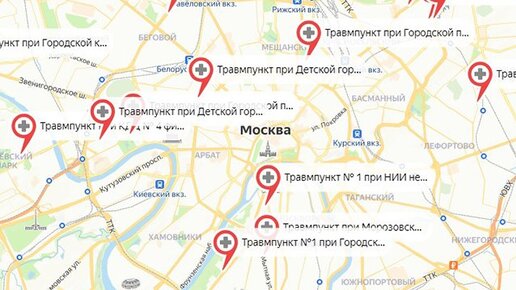 Все травмпункты Москвы. Карта