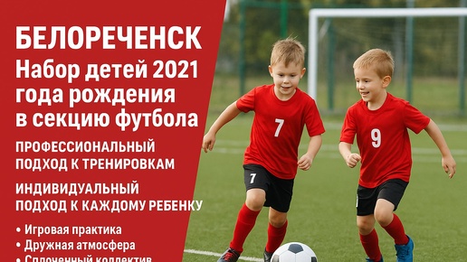 Секция футбола в Белореченске — набор детей 2021 года ⚽ Открыт набор мальчиков и девочек 2021 года рождения в футбольную секцию под руководством тренера Дениса Владимировича — одного из титулованных тренеров города Белореченска. Молодой и амбициозный специалист, уже успевший зарекомендовать себя как тренер, умеющий раскрывать потенциал каждого ребёнка. 📞 Телефон для записи: +7(928)663-07-85👤 Тренер: Денис Владимирович 📍 Место тренировок: г...