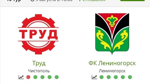 ⚽️ 9 августа в 16:00 на стадионе «Яшьлек» в пгт Рыбная Слобода встретятся футбольные команды «Труд» города Чистополь и «Футбольный клуб