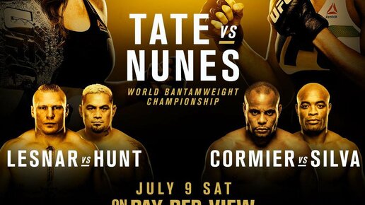 Недавно стал известен кард турнира UFC 251, который пройдёт на бойцовском острове. На радость фанатам его возглавляют аж три титульных боя. Поэтому сегодня рассмотрим турниры UFC, на которых уже было по три титульных боя. Поехали! UFC 200 Юбилейный турнир UFC 200 отличался от всех прошлых турниров двумя вещами - три титульных боя и жёлтый октагон. Третий и четвёртый по значимости бои были за пояс - это Даниэль Кормье против Андерсона Сильвы за титул в полутяжелом весе (изначально планировался бой...