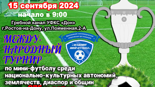 В честь Дня города Ростова-на-Дону! 15 сентября, на гребном канале УФКС "Дон" в г.Ростове-на-Дону прошел Международный турнир по мини-футболу "Ростов-многонациональный" среди национальных диаспор, землячеств и автономий в честь 275-и летия основания Ростова-на-Дону. Само соревнование по футболу является едва ли не единственным в стране по составу участников, по своей значимости, по его духу. Ростов-на-Дону считается одним из самых многонациональных городов России -официально здесь проживает порядка 150 национальностей...