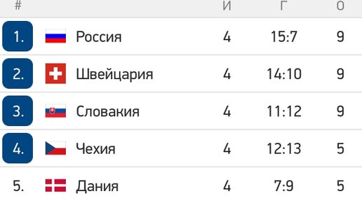 Закончилась первая неделя чемпионата и каждая из команд сыграла по четыре матча. Плотность в таблице поражает, каждая из команд до сих пор имеет математический шанс на выход из группы. На вершине группы троевластие, сборные России, Швейцарии и Словакии имеют по девять очков и имеют преимущество над остальными сборными в борьбе за выход из группы, по игре сборная Швейцарии и России выглядят убедительнее и сложно представить, что эти сборные не попадут в плей-офф. Словакам же ещё предстоят тяжёлые...