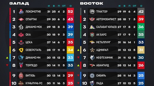 Турнирная таблица КХЛ за 10 туров до финиша