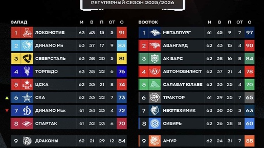 🏒Турнирная таблица КХЛ🏒