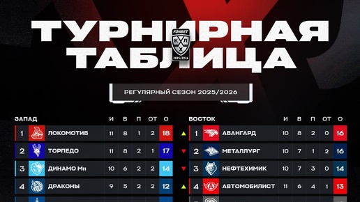 🔥🇷🇺 Турнирная таблица КХЛ на данный момент! 📊 На каком месте находится ваша команда?