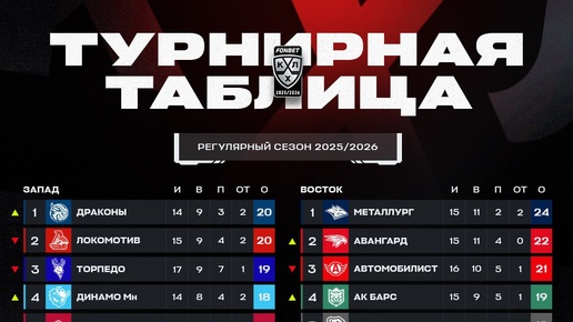 🔥🇷🇺 Турнирная таблица КХЛ! 📊 На каком месте находится ваша команда?