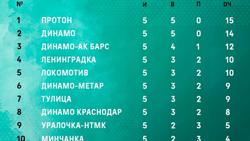 Турнирная таблица девушек после 5 туров Суперлиги