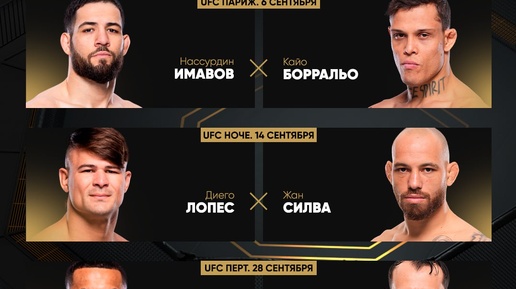 🗓Календарь турниров UFC на сентябрь Нас ждет всего три неномерных ивента 👊 6 сентября отправимся во Францию, где сойдутся два претендента на пояс в среднем весе 🏆 Затем 14 сентября посмотрим яркую зарубу Лопеса и Силвы 🔥 Ну а в конце месяца нас ждет турнир в Австралии...