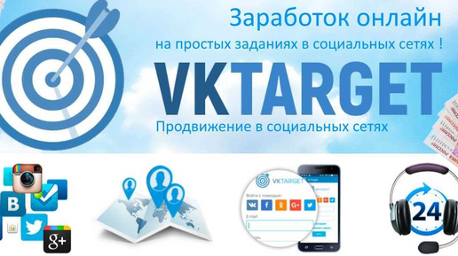 От Вас требуется только наличие аккаунта в самых популярных социальных сетях. В данном случае это Одноклассники, ВКонтакте, Twitter, Facebook, Instagram и пр. Страница сайта выглядит следующим образом: Регистрация на ресурсе элементарная, не требует особых навыков (времени потребуется не более 5 минут) : Заработок на VKTARGET. Заработок на сервисе- это выполнение элементарных заданий...