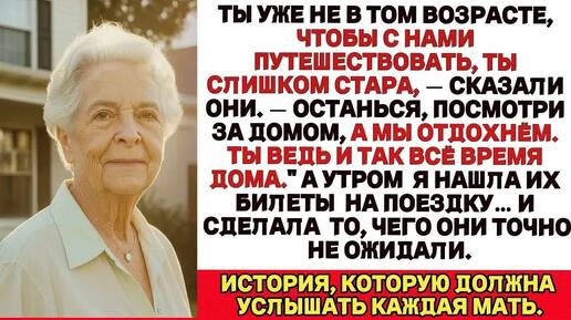 — Ты уже не в том возрасте, чтобы с нами путешествовать. Ты слишком стара, мам. Просто присмотри за домом, а мы отдохнем. Эти слова повисли в воздухе, тяжелые и липкие, как предгрозовая духота. Мой сын, Дима, говорил это, не глядя мне в глаза, поправляя зеркало заднего вида. Лариса, невестка, уже сидела на переднем сиденье, уткнувшись в телефон, и лишь бросила через плечо что-то вроде: «Да, Галина Петровна, вам ведь и самой тяжело будет. Перелет, жара, гостиницы... А тут цветы, огород. Мы на связи»...