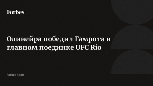 В ночь с 11 на 12 октября в Рио-де-Жанейро на Jeunesse Arena состоялся турнир UFC Rio. В главном бою вечера бывший чемпион UFC в легком весе и рекордсмен организации по количеству досрочных побед Чарльз Оливейра победил восьмого в списке лучших бойцов дивизиона Матеуша Гамрота удушающим приемом во втором раунде. Оливейра является рекордсменом UFC по количеству досрочных побед (21) и количеству болевых приемов (17). Он ни разу не проигрывал на родине, в Бразилии, где у него семь побед в UFC. Всего на счету 35-летнего бойца 36 побед в смешанных единоборствах и 11 поражений...