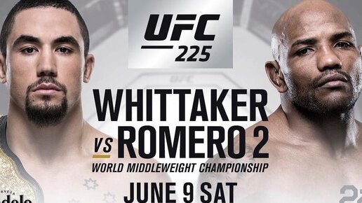 10 июня 2018 года в Чикаго пройдёт очередной турнир UFC-225, главным событием которого станет противостояние между чемпионом UFC в средней весовой категории, австралийцем Робертом Уиттакером и первым номером рейтинга этой же весовой категории, кубинцем Йоэлем Ромеро. Бойцы уже сталкивались в бою на турнире UFC-213, который проходил 08 июля 2017 года в Лас-Вегасе. Это был сложный бой для обоих бойцов. Решением судей по прошествии всех пяти раундов победу всё-таки одержал Уиттакер. Предстоящий поединок для обоих очень много значит...